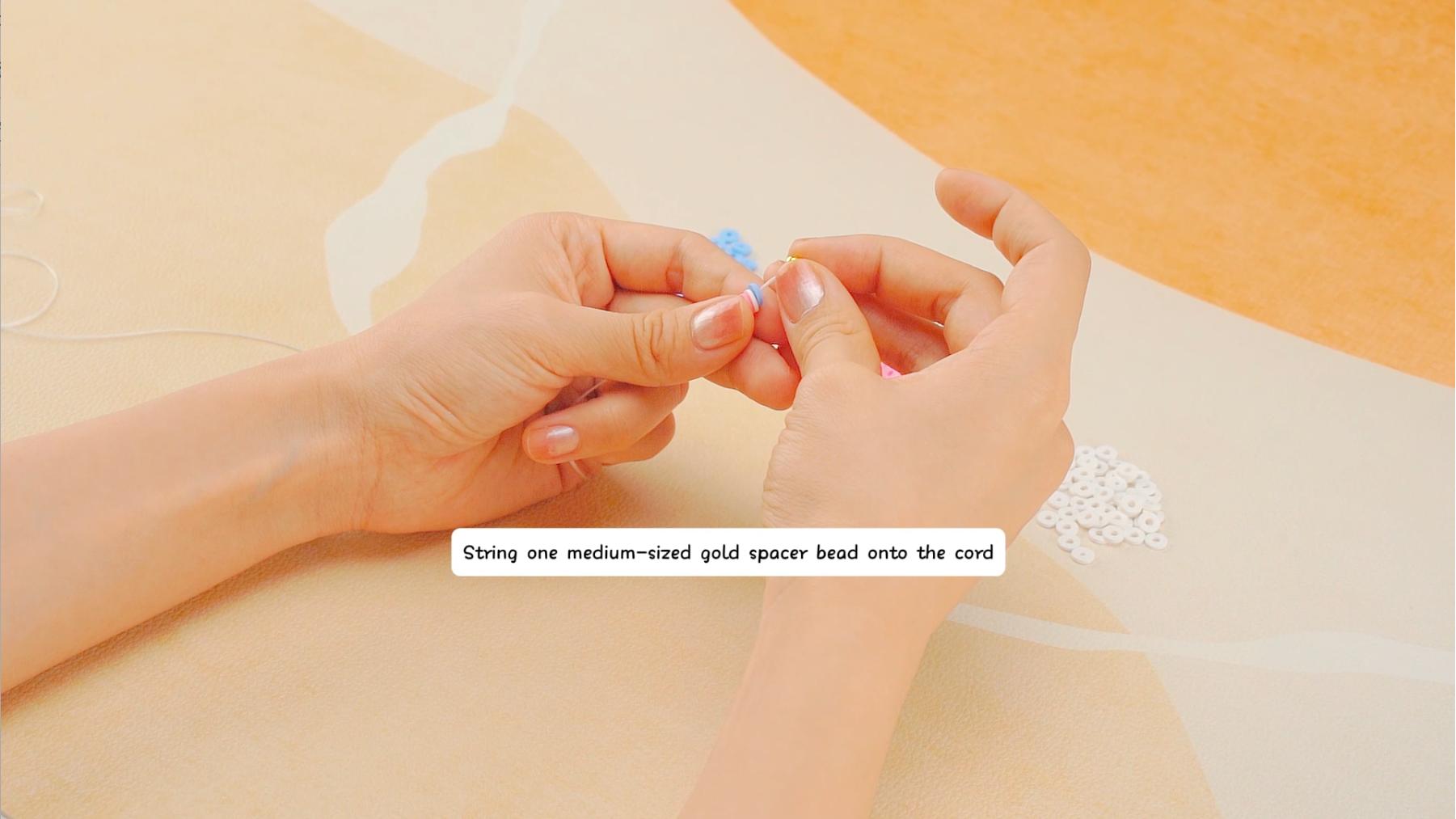 - String one medium-sized gold spacer bead onto thecord