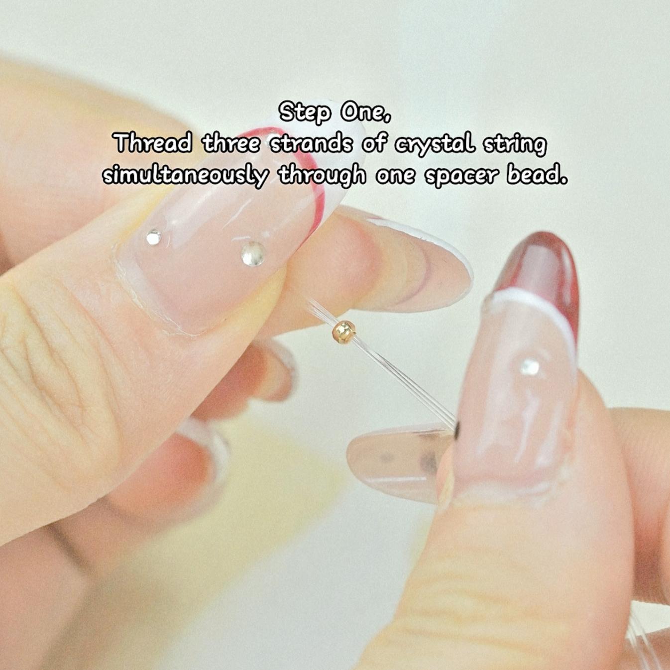 Start by threading all three strands of cord through a crimp bead. This will act as the starting point and keep the strands securely together.